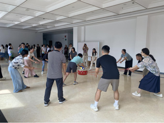 活动现场气氛热烈,其中,“飞镖投准”项目作为本届运动会的热门环节,参与度极高,深受教职工欢迎。参赛老师们凝神静气,精准投掷,赛场边不时爆发出热烈的掌声与喝彩。在随后的集体项目中,教职工们更是全情投入:在“合力建塔”中沉着冷静、协作无间;在“鼓动人心”中全神贯注、配合默契。尤其是压轴项目“拔河比赛”,将现场气氛推向最高潮,呐喊声、欢呼声此起彼伏,充分展现了我院教职工团结拼搏、昂扬向上的精神风貌。