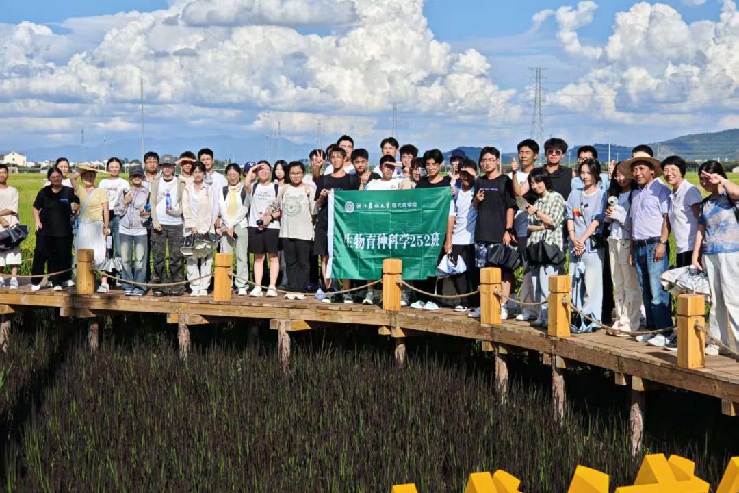 为拓宽学生视野,熟知专业特点,理解种子对于中国粮食安全的重要意义,9月27日,学院党委书记梁卫玲、专业负责人赵向前、班主任胡鑫和代丽萍带领第一届生物育种科学专业全体新生,前往浙江省农科院玉米和特色旱粮研究所、嵊州良种繁育场、嵊州农科所开启沉浸式的专业实践教学第一课。