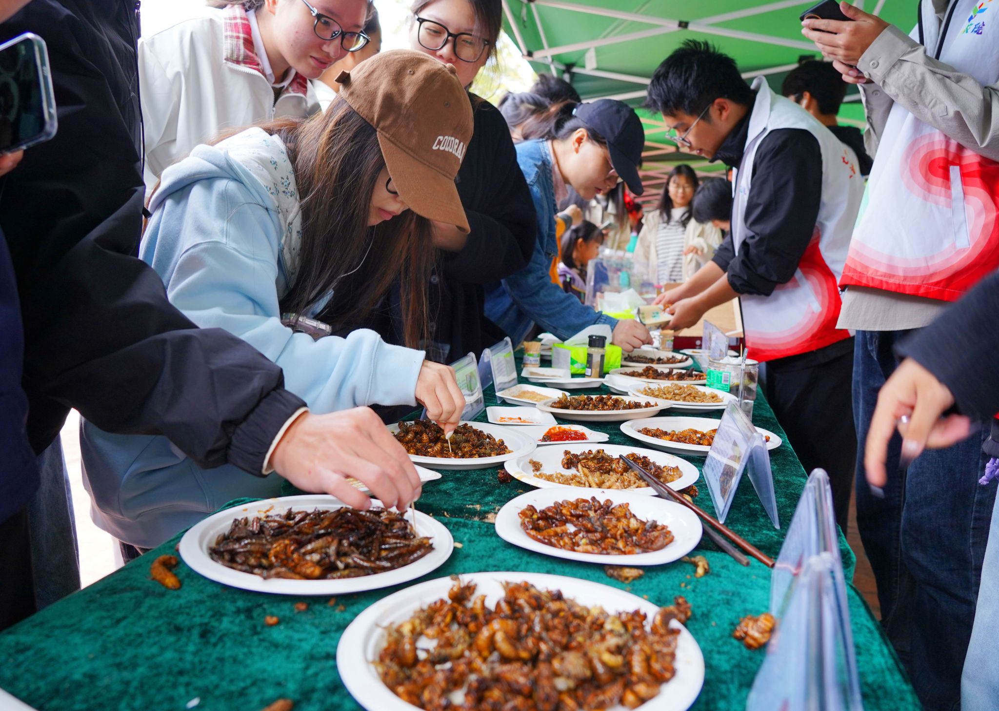 在当天的BV伟德官方网站昆虫文化节上,不仅有各色昆虫美食展,还有昆虫标本及工艺作品展、昆虫科研成果展、昆虫摄影展、资源昆虫展、昆虫体验区、昆虫文化知识问答互动等丰富多彩的活动,学生既可以现场学习品尝昆虫美食烹饪制作方式,也可以欣赏昆虫标本馆部分馆藏标本、昆虫创意作业,了解生物防治的农业害虫诱捕器及绿僵菌等产品,增强昆虫方面的知识。